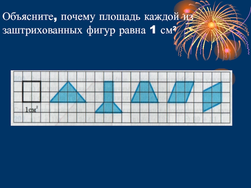Слайд 6Объясните, почему площадь каждой из заштрихованных фигур равна 1 см2