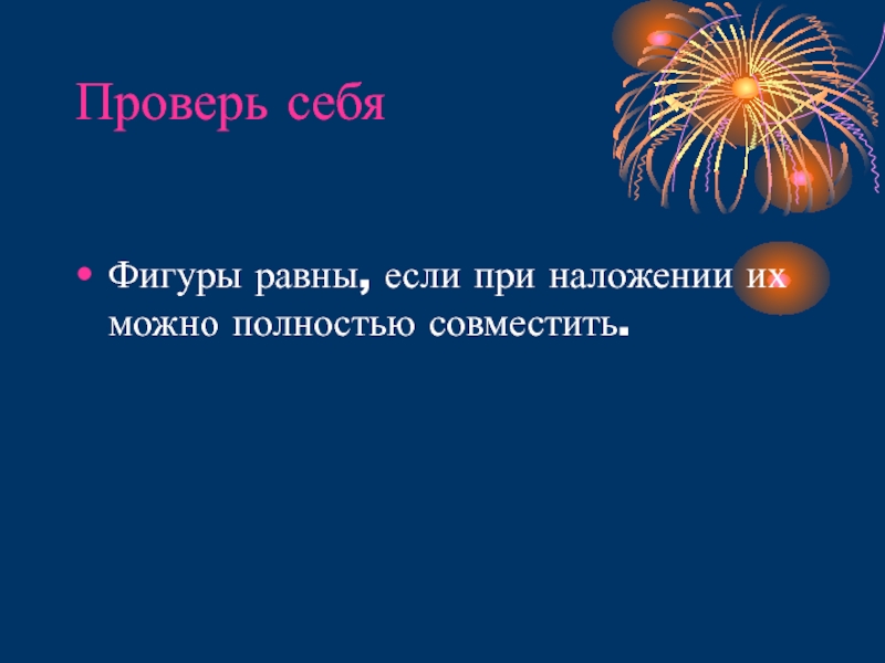 Проверь себяФигуры равны, если при наложении их можно полностью совместить.