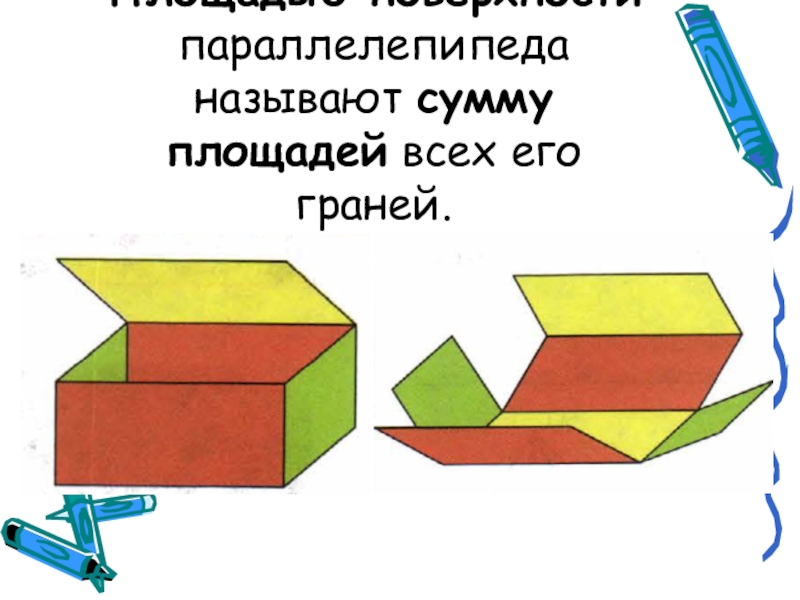 Слайд 8Площадью поверхности параллелепипеда называют сумму площадей всех его граней.