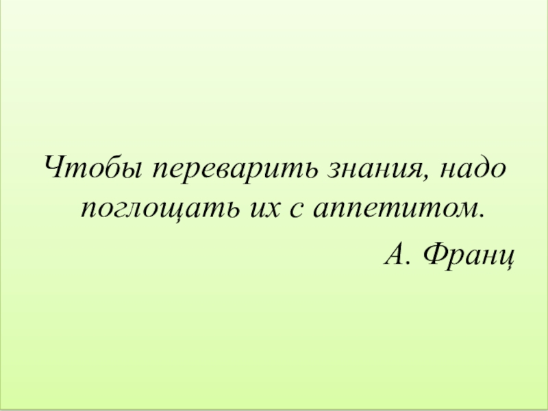 Чтобы переварить знания, надо поглощать их с аппетитом.А. Франц
