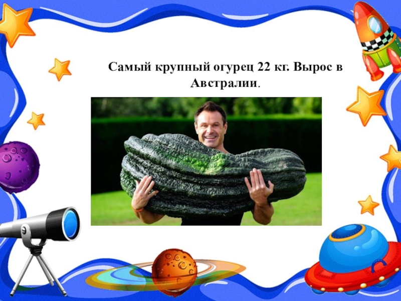 Слайд 19Самый крупный огурец 22 кг. Вырос в Австралии.