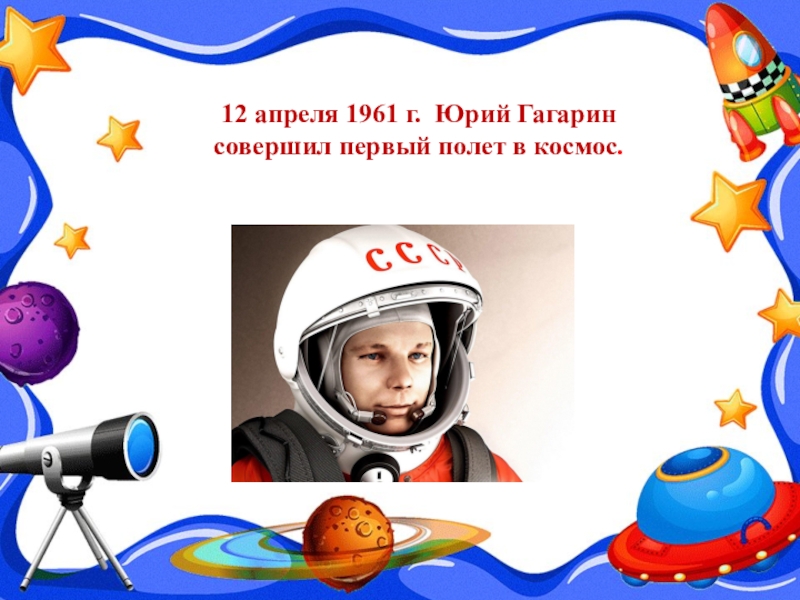 Слайд 612 апреля 1961 г. Юрий Гагарин совершил первый полет в космос.