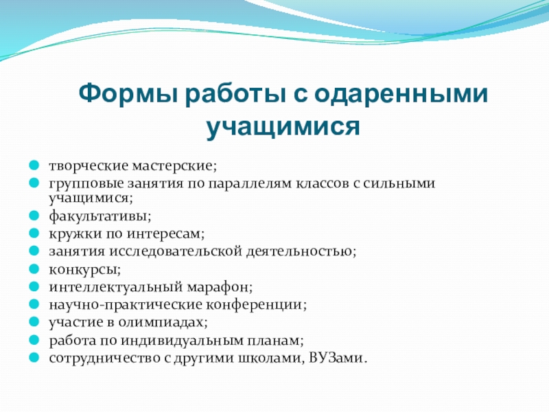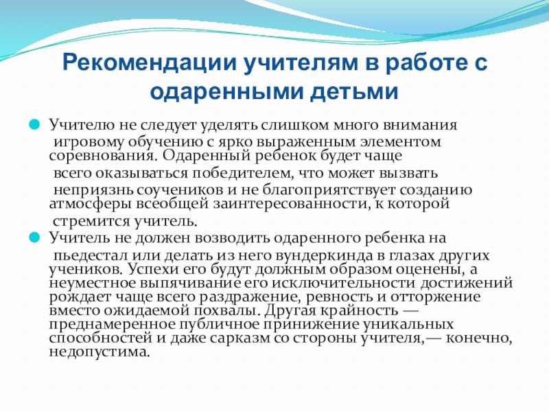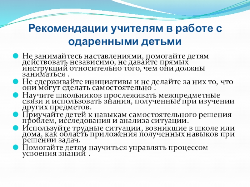 Слайд 20Рекомендации учителям в работе с одаренными детьми