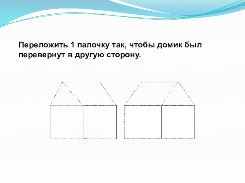 Слайд 13Переложить 1 палочку так, чтобы домик был перевернут в другую сторону.