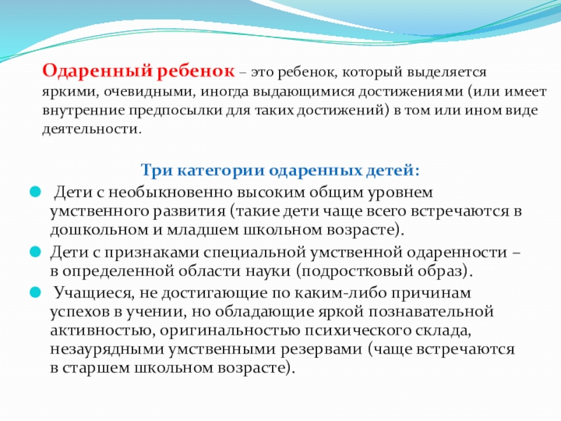 Одаренный ребенок – это ребенок, который выделяется яркими, очевидными, иногда выдающимися
