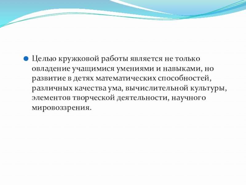 Слайд 17Целью кружковой работы является не только овладение учащимися умениями и навыками,
