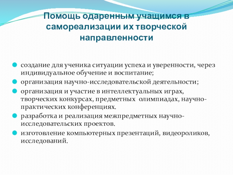 Помощь одаренным учащимся в самореализации их творческой направленности