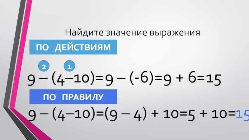 9 – (4 – 10)=9 – 4 + 10