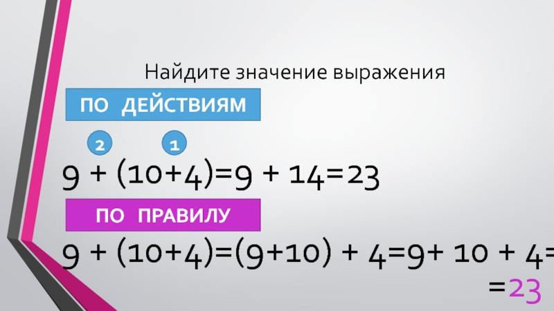 9 + (10+4)=9 + 10 + 4