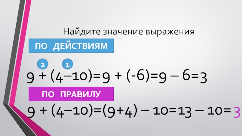 9 + (4 – 10)=9 + 4 – 10