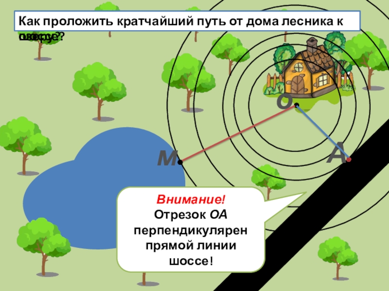 Отрезок ОА перпендикулярен прямой линии шоссе!