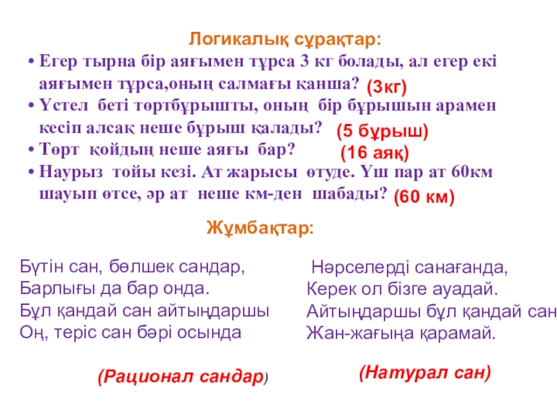 5. «Сергіту сәті» (логикалық сұрақтар, жұмбақтар)
