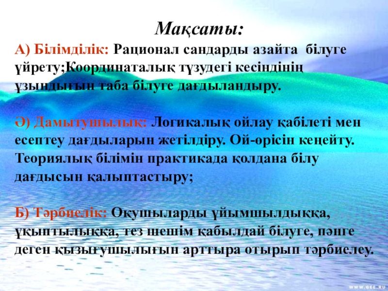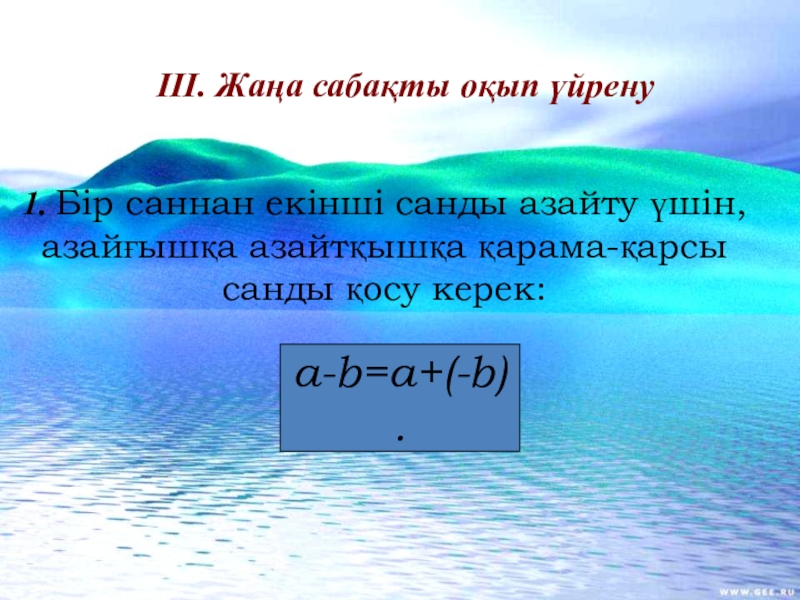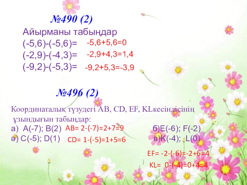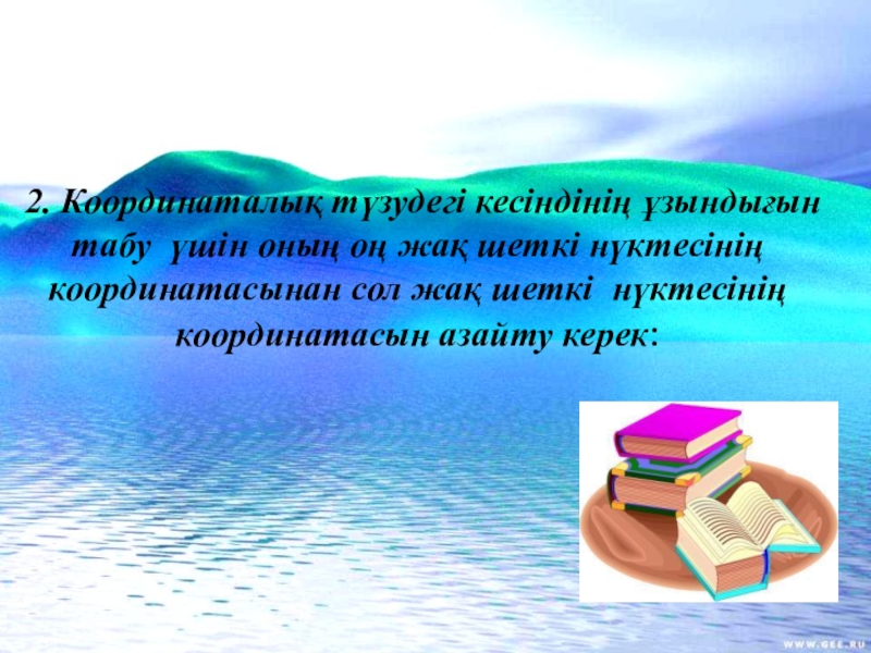 2. Координаталық түзудегі кесіндінің ұзындығын табу үшін оның оң жақ шеткі нүктесінің координатасынан сол жақ шеткі нүктесінің координатасын азайту керек: