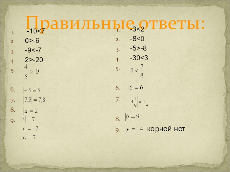 9) Решите уравнение: модуль числа у равен -4