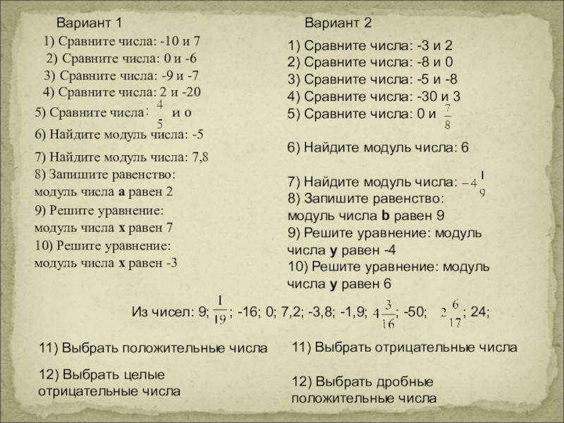 1) Сравните числа: -3 и 2