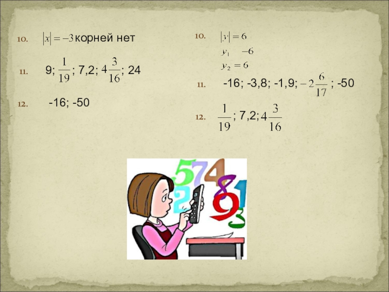10) Решите уравнение: модуль числа у равен 6