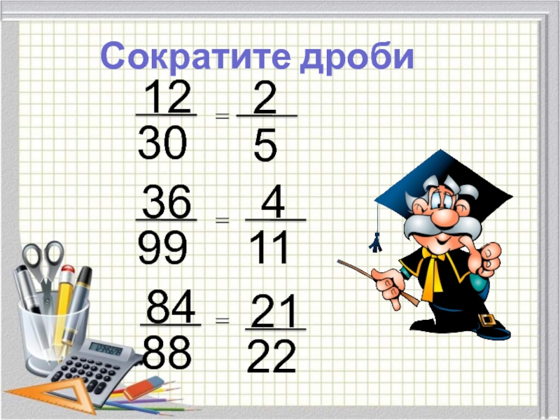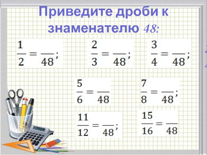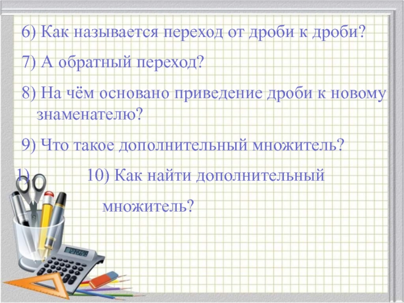 6) Как называется переход от дроби к дроби? 7) А обратный переход?8) На чём основано приведение дроби