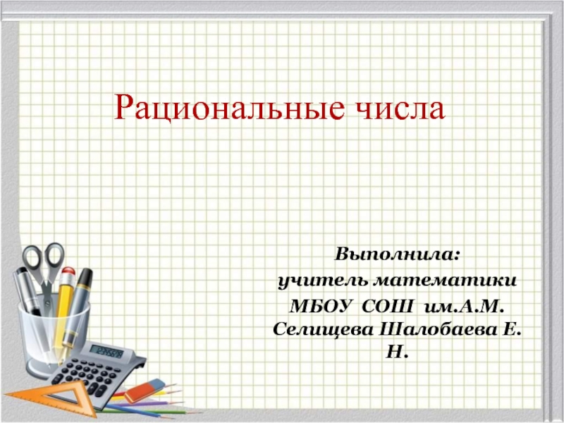 Рациональные числаВыполнила:учитель математики МБОУ СОШ им.А.М.Селищева Шалобаева Е.Н.