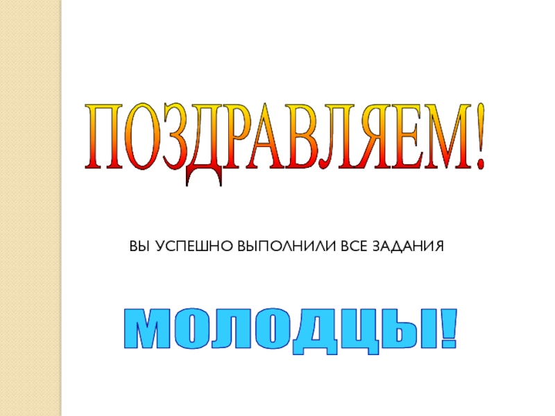 ПОЗДРАВЛЯЕМ!  ВЫ УСПЕШНО ВЫПОЛНИЛИ ВСЕ ЗАДАНИЯМОЛОДЦЫ!