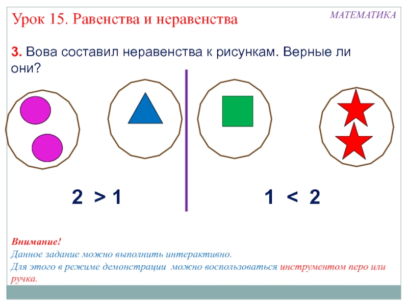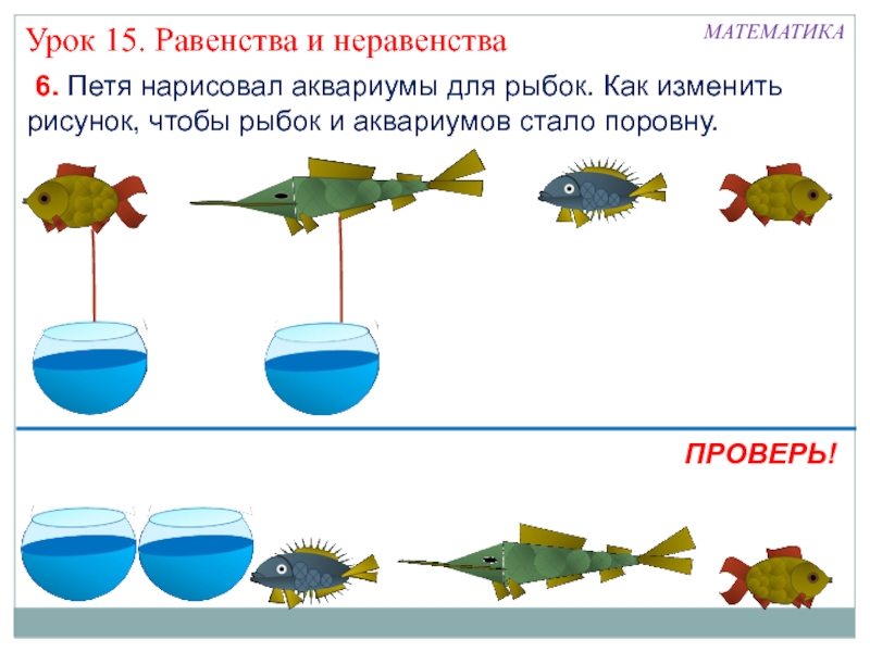 Замени знак «=» на знак «>» или «<» в неверном равенстве. У тебя должно получиться верное неравенство.