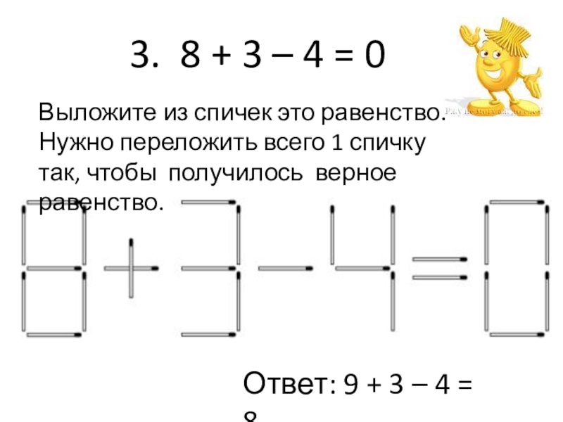 Ответ: 9 + 3 – 4 = 8