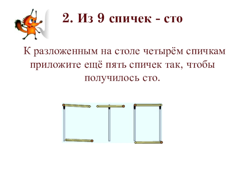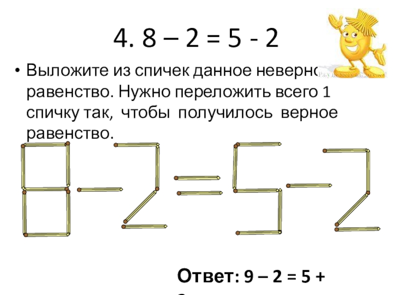 Ответ: 9 – 2 = 5 + 2