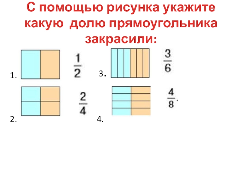 С помощью рисунка укажите какую долю прямоугольника закрасили:1.2.3.4.