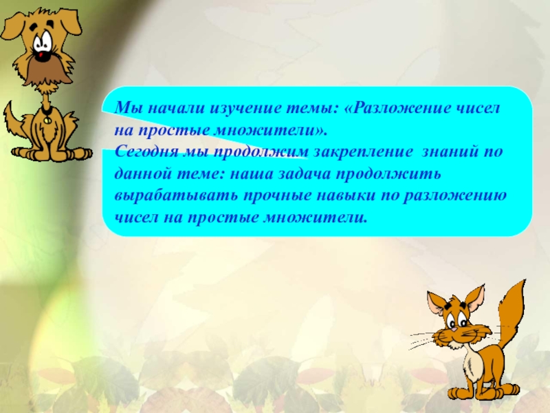 Сегодня мы продолжим закрепление знаний по данной теме: наша задача продолжить вырабатывать прочные навыки по разложению чисел на простые множители.