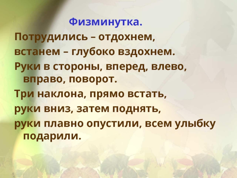 руки плавно опустили, всем улыбку подарили.