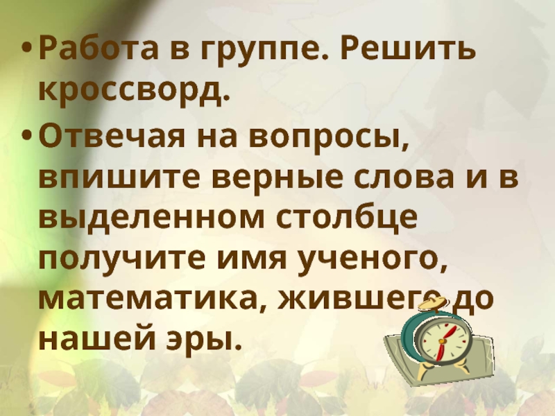Слайд 21Работа в группе. Решить кроссворд.