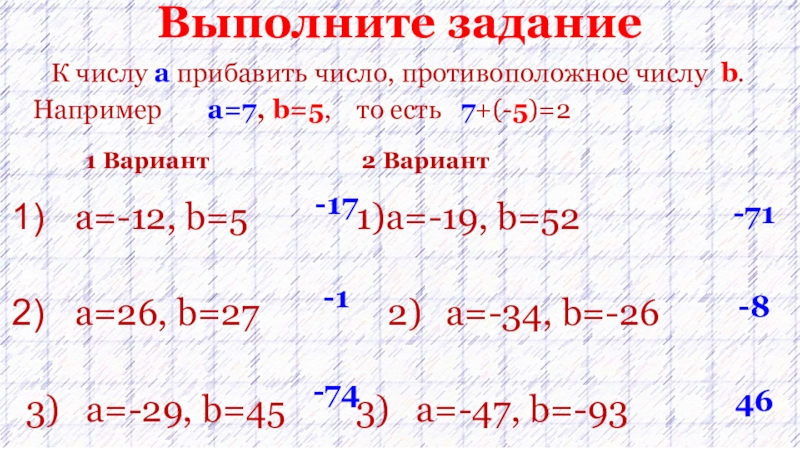 а – в = а + (-в)