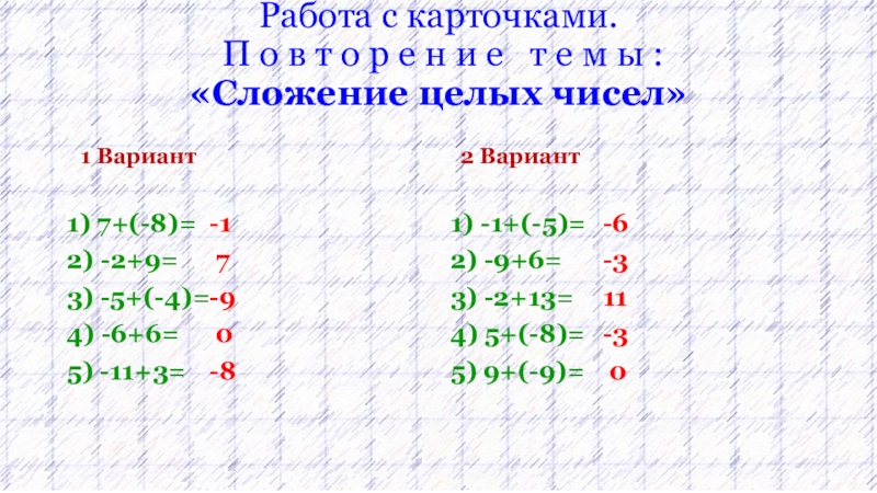 1) 7+(-8)=