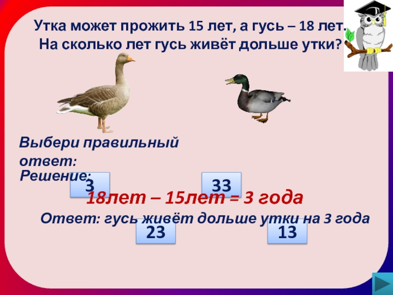 Ответ: гусь живёт дольше утки на 3 года