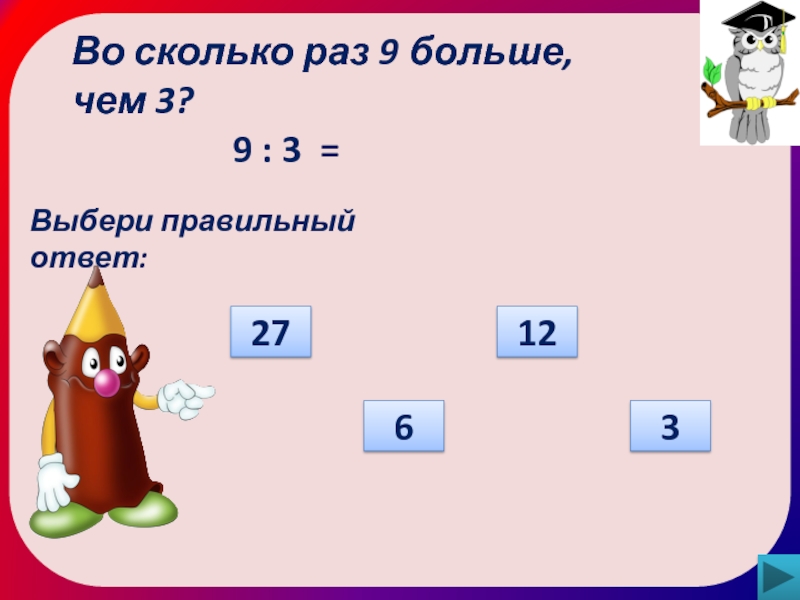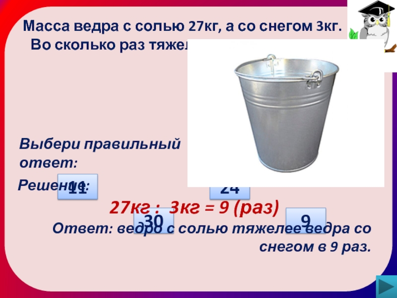 27кг : 3кг = 9 (раз)
