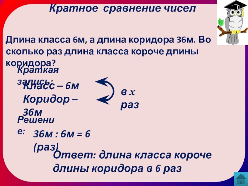 Ответ: длина класса короче длины коридора в 6 раз