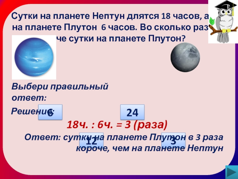 Ответ: сутки на планете Плутон в 3 раза короче, чем на планете Нептун