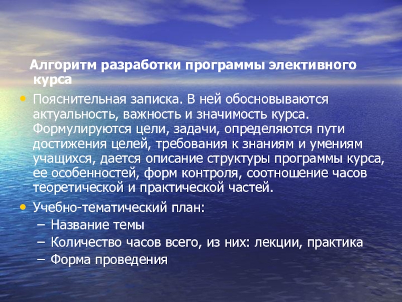 актуальность, важность и значимость курса. Формулируются цели, задачи, определяются пути достижения целей, требования к знаниям и умениям учащихся, дается описание структуры программы курса, ее особенностей, форм контроля, соотношение часов теоретической и практической частей.