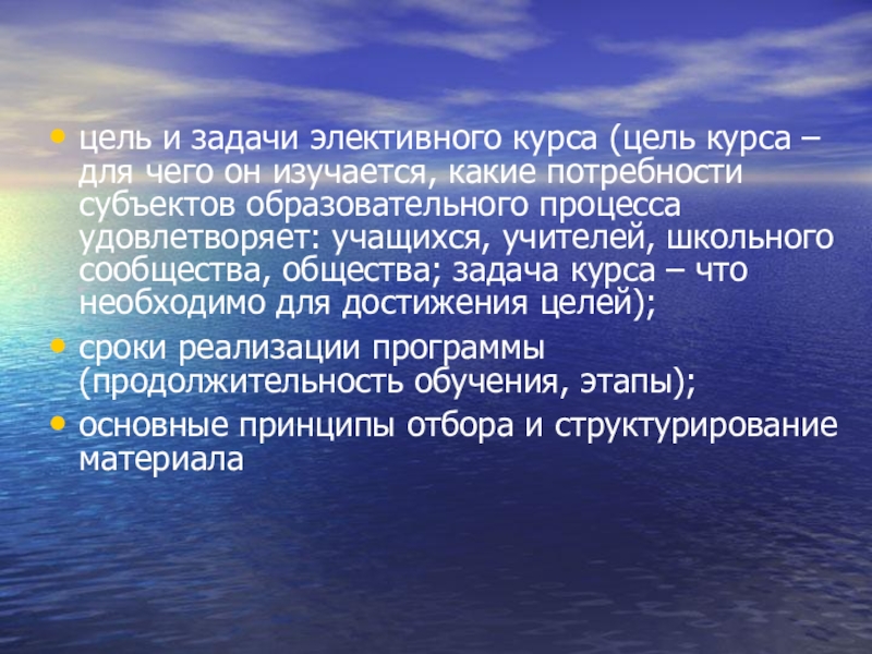 Слайд 11цель и задачи элективного курса (цель курса – для чего он