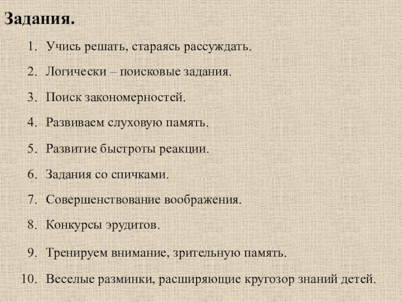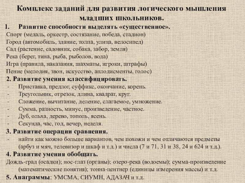 Слайд 9Комплекс заданий для развития логического мышления