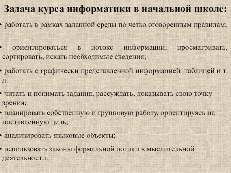 Слайд 12Задача курса информатики в начальной школе:
