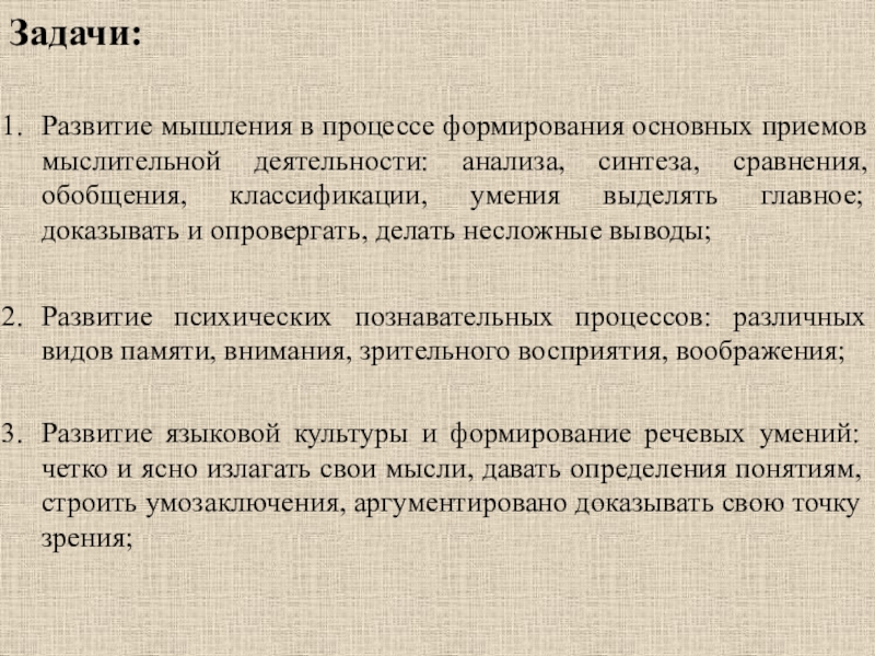 Развитие мышления в процессе формирования основных приемов мыслительной деятельности: анализа, синтеза,