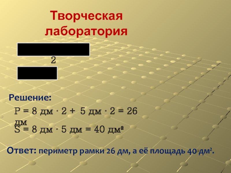 P = 8 дм ∙ 2 + 5 дм ∙ 2 = 26 дм