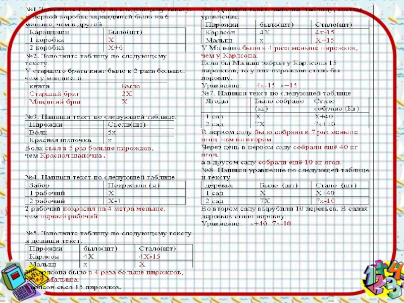 Презентация, доклад по математике на тему Решение задач на составление уравнений(6 класс)