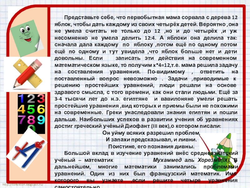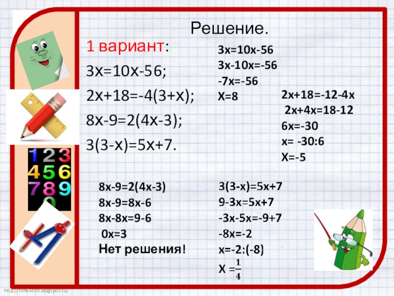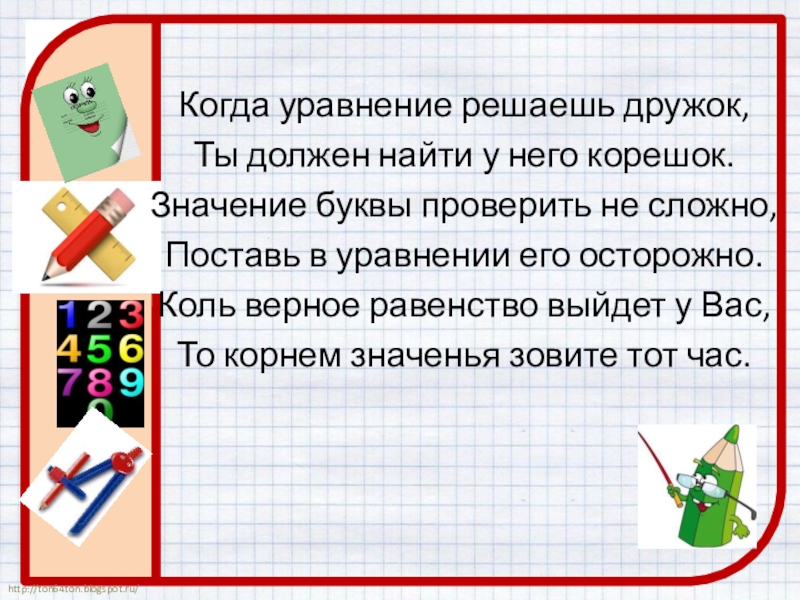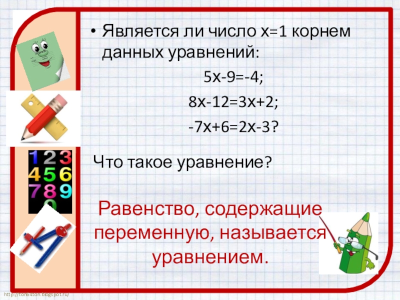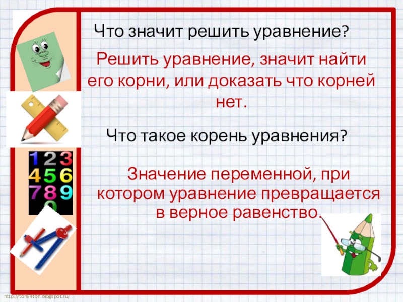 Значение переменной, при котором уравнение превращается в верное равенство.
