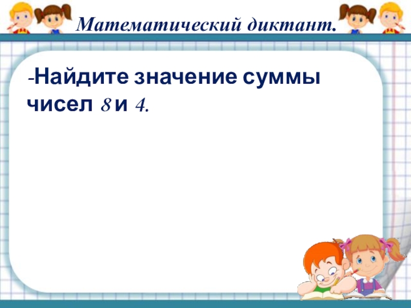 -Найдите значение суммы чисел 8 и 4. Математический диктант.