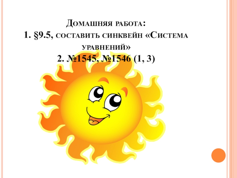 1. §9.5, составить синквейн «Система уравнений»