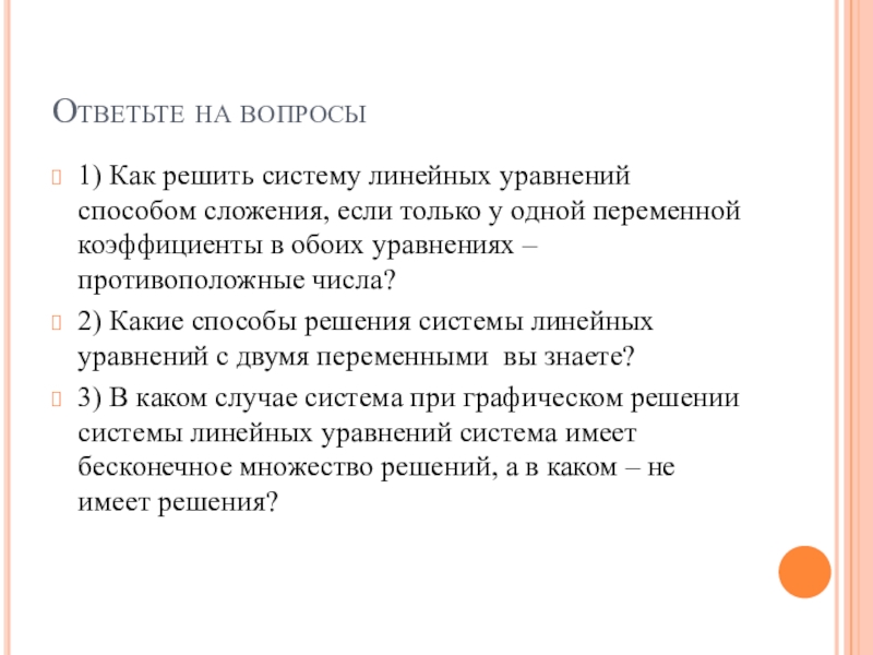 2) Какие способы решения системы линейных уравнений с двумя переменными вы знаете?
