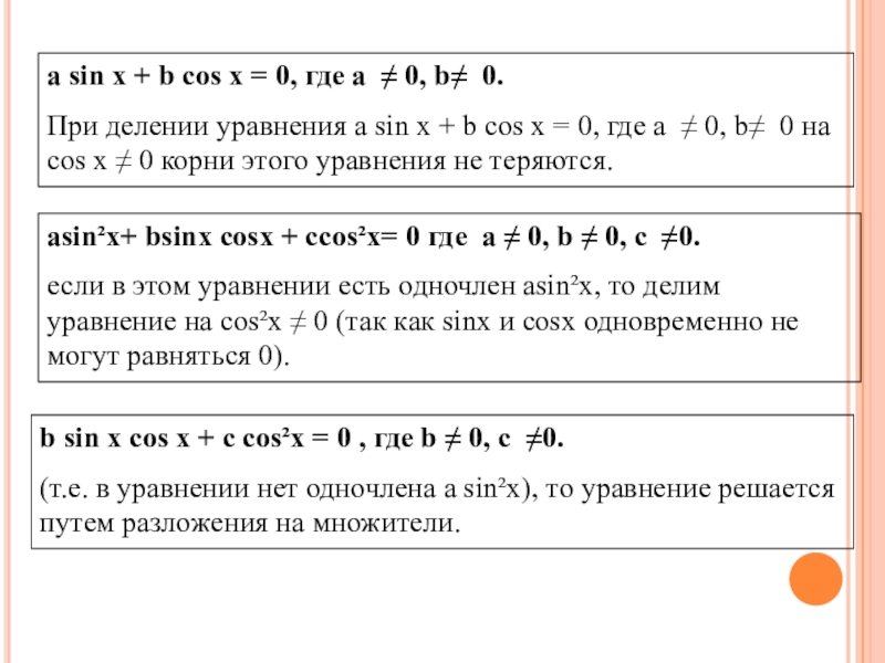 b sin x cos x + c cos²x = 0 , где b ≠ 0, с ≠0.