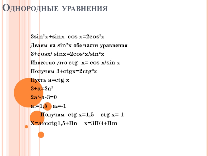 если в этом уравнении есть одночлен аsin²x, то делим уравнение на cos²x ≠ 0 (так как sinх и cosх одновременно не могут равняться 0).