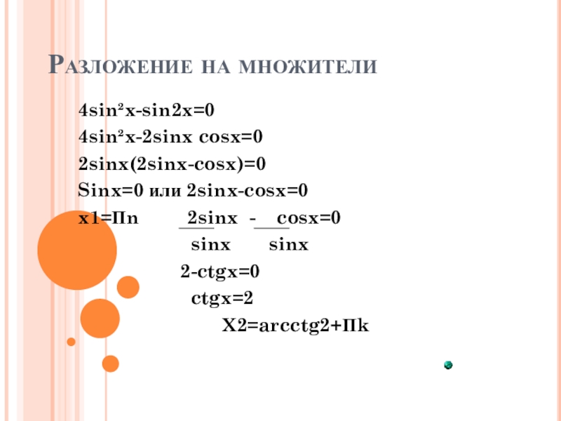 (т.е. в уравнении нет одночлена a sin²x), то уравнение решается путем разложения на множители.